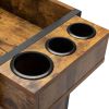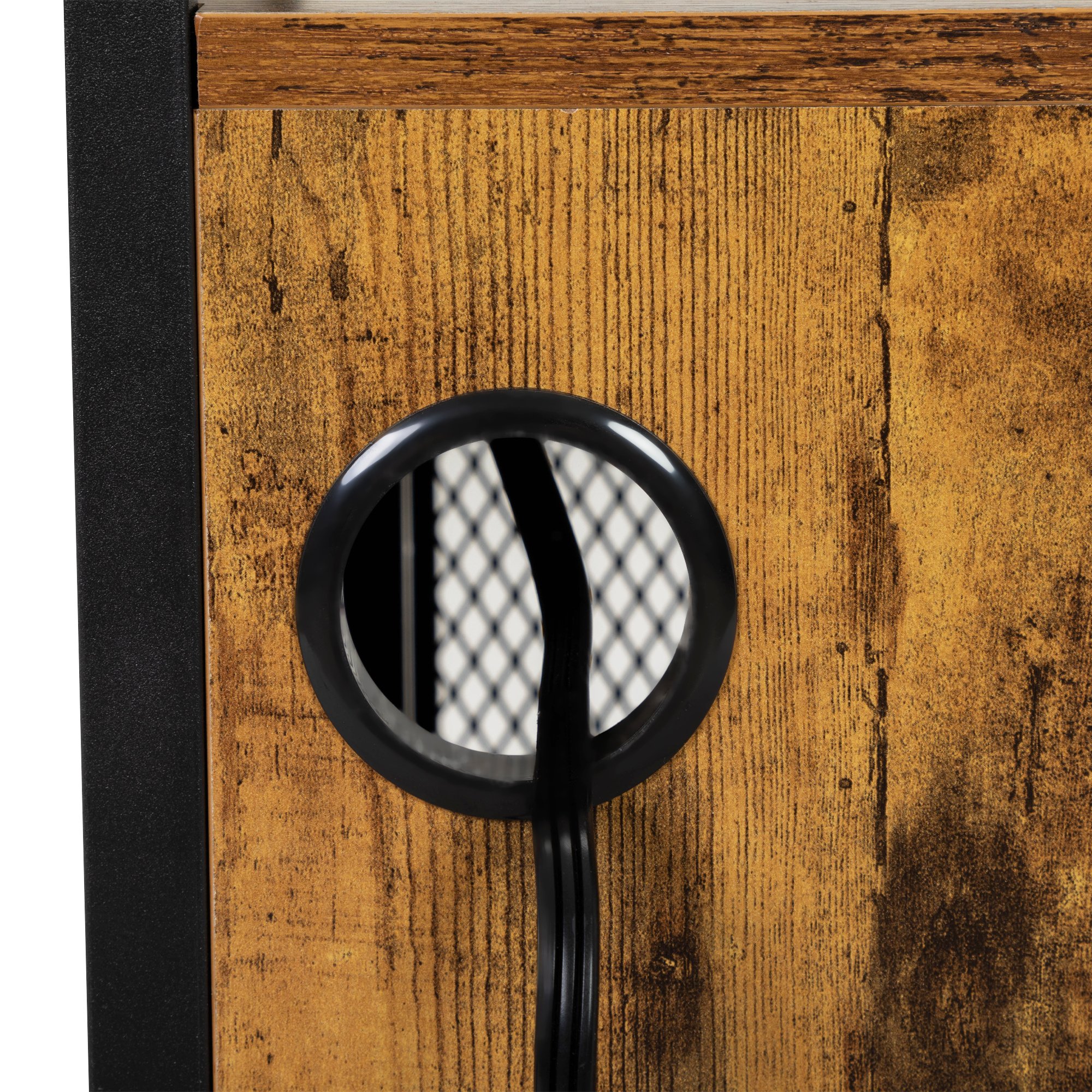 [Rustic Wood Salon Trolley]: This stylish rolling salon trolley consists of a top compartment, a middle shelf, a cabinet with wire-netting doors, and a charging socket, which is a practical partner for hair stylists.