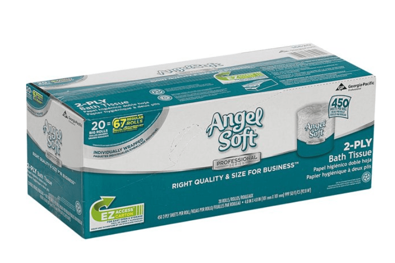 Angel Soft Professional Series Embossed Toilet Paper by Georgia Pacific Professional, White, 20 / Carton (Quantity) Premium, 2-ply bath tissue delivers the appearance and softness of at-home tissue for today's discerning business customers that you want to impress. Angel Soft PS Premium Bath Tissue features an attractive emboss and offers clean upscale packaging coordinates with decor. High-capacity, 450-sheet rolls decrease roll changes, so it reduces labor costs. Tissue is safe for all standard sewer and septic systems.