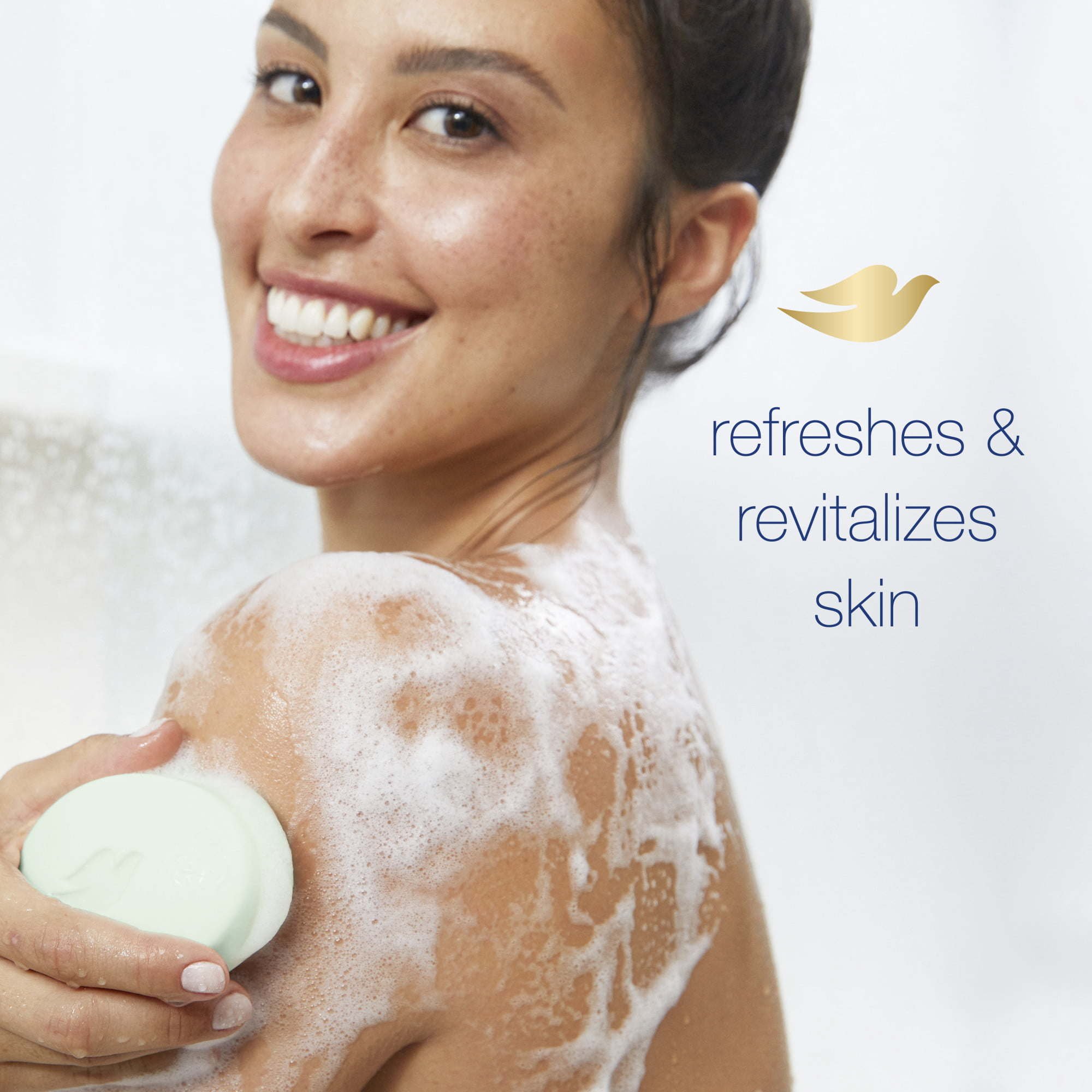 Dove Cool Moisture Beauty Bar combines the refreshing scent of cucumber and green tea with Dove gentle cleansers and ¼ moisturizing cream. Dove Beauty Bar is proven to be more gentle and mild on skin than ordinary bar soap. It can be used as a hand soap and as a mild facial cleanser, so if you’re also after a fresh face and refreshed hands throughout the day, why not try adding Dove Cool Moisture Beauty Bar to your skin care routine? A light, hydrating feel and refreshing formula for effectively nourished skin. A refreshing shower can be just what you need to start the day off right. Dove blends nourishing ingredients and light, fresh scents in a formula that’s gentle on your skin whether it is used as a bar of soap, facial cleanser, body wash or hand soap. Dove Beauty Bars give you a feeling of hydrating freshness that leaves you and your skin feeling blissfully revived, unlike when using harsh bar soap. It's the same great formula with a new look. For best results: Give your hands the boost they deserve with Dove Beauty Bar between wet hands. Once you’ve covered your body with the rich lather, make sure to avoid contact with your eyes, and rinse away thoroughly. At Dove, our vision is of a world where beauty is a source of confidence, and not anxiety. So, we are on a mission to help the next generation of women develop a positive relationship with the way they look, helping them raise their self-esteem and realize their full potential.