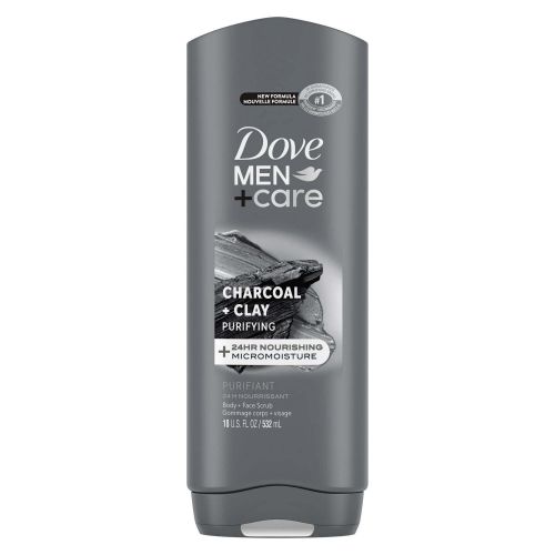 NEW FORMULA: Dove Men+Care Charcoal+Clay Body and Face Wash was developed for men's skin. Our body wash features MICRO-MOISTURE Technology, plant-based cleansers, and skin-strengthening nutrients