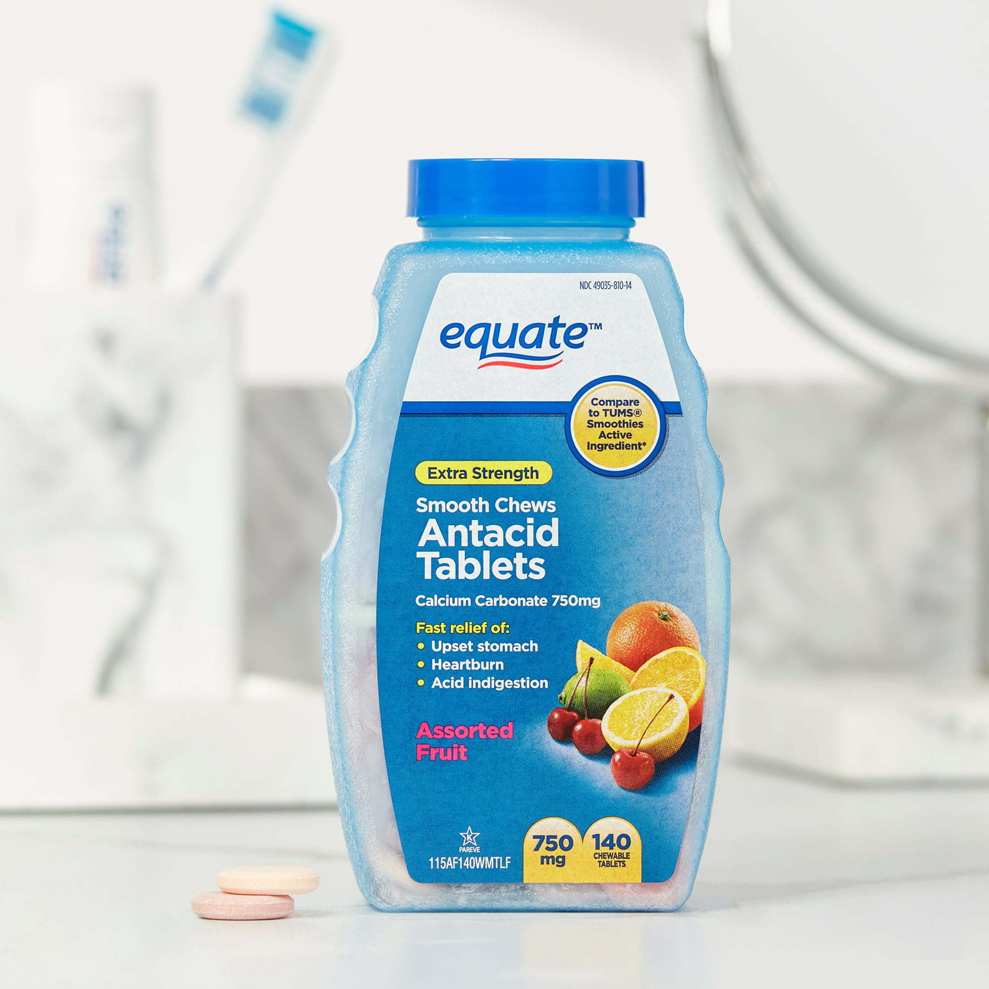 Equate Extra Strength Smooth Chews Antacid Tablets;  Assorted Fruit;  140 Count Equate Extra Strength Smooth Chews Antacid Tablets;  Assorted Fruit;  140 Count Equate Extra Strength Smooth Chews Antacid Tablets;  Assorted Fruit;  140 Count