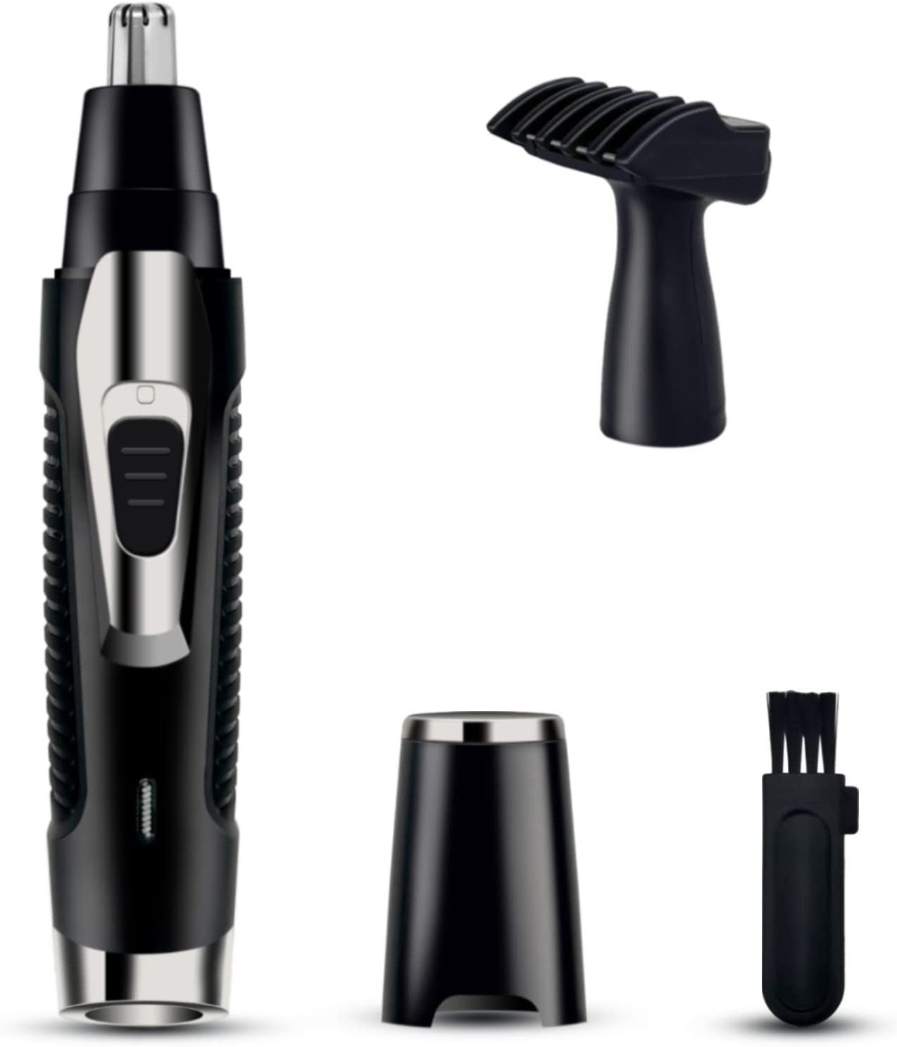 Trimmer, nose hair, sideburns hair trimmer, instruction manual, charging cable, cleaning brush