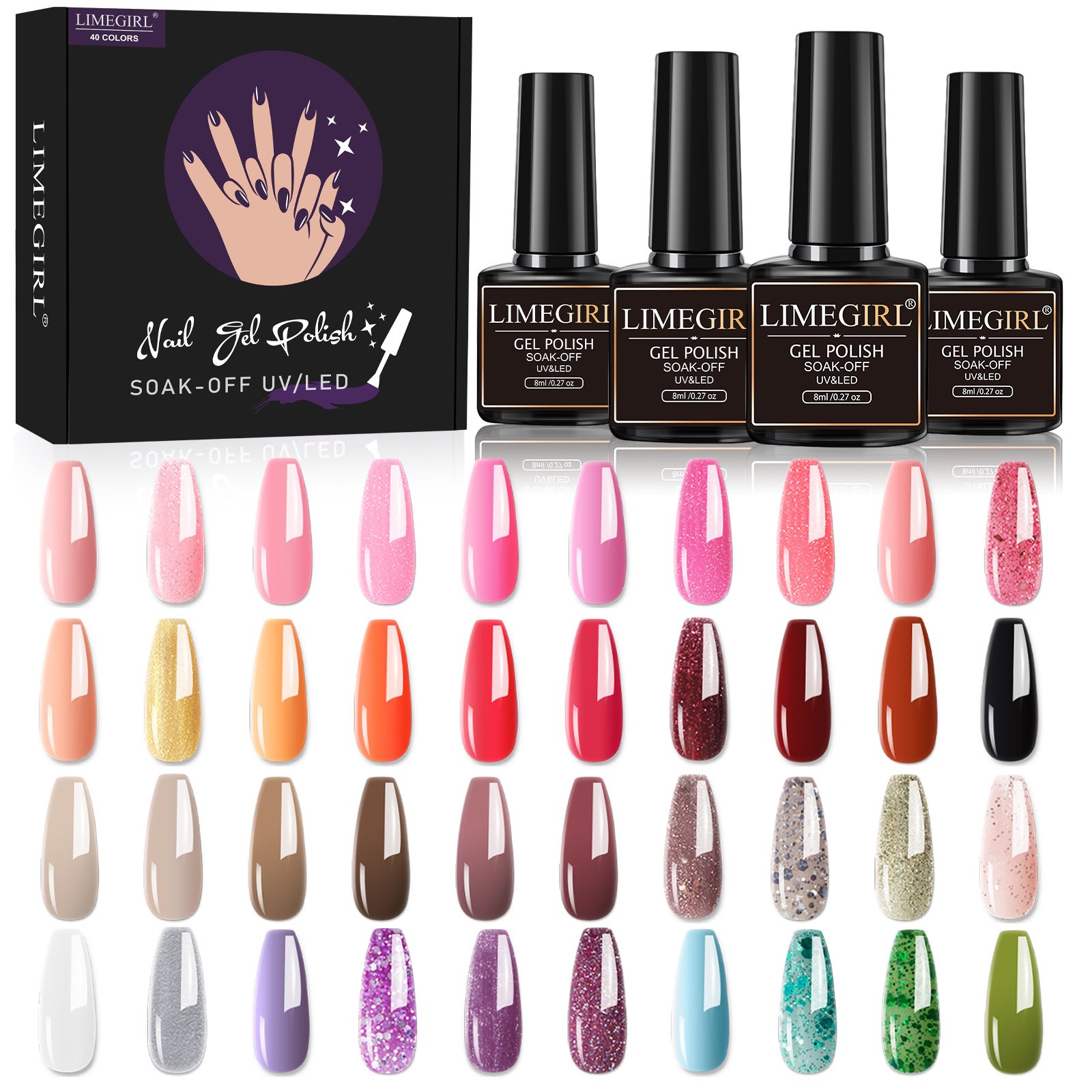Home > Limegirl Gel Nail Polish Kit Pink Glitter Pop Summer 40/24 Colors Semi-Permanent UV Led Gel Varnish Soak Nails
