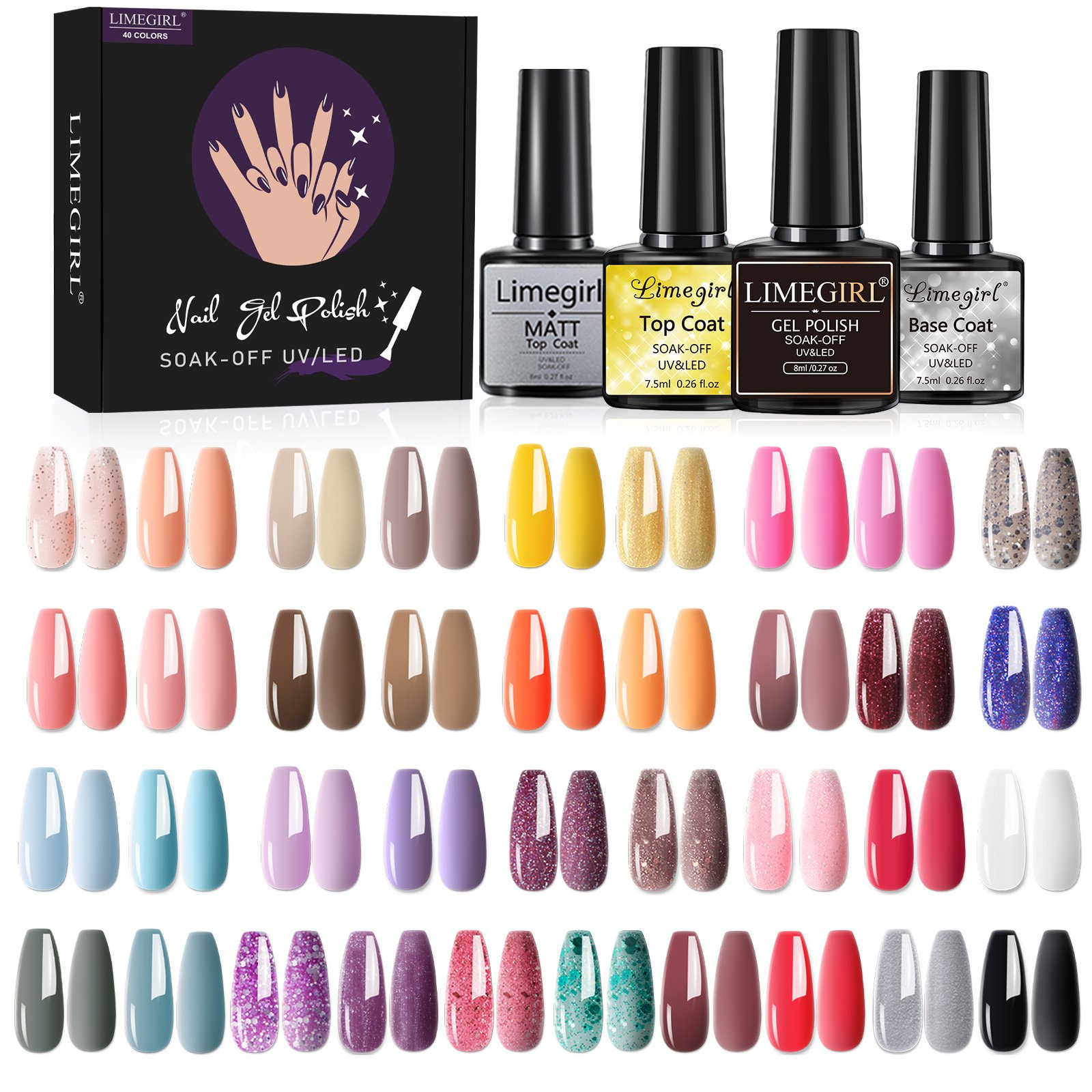 Home > Limegirl Gel Nail Polish Kit Pink Glitter Pop Summer 40/24 Colors Semi-Permanent UV Led Gel Varnish Soak Nails